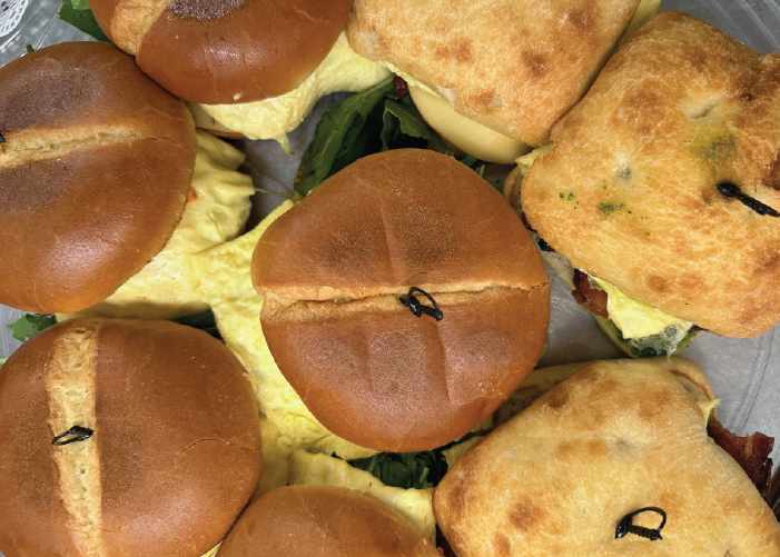 Mini breakfast sandwiches that deliver big flavor in every bite. Choice of sausage, bacon, or veggie sausage with egg and cheese.