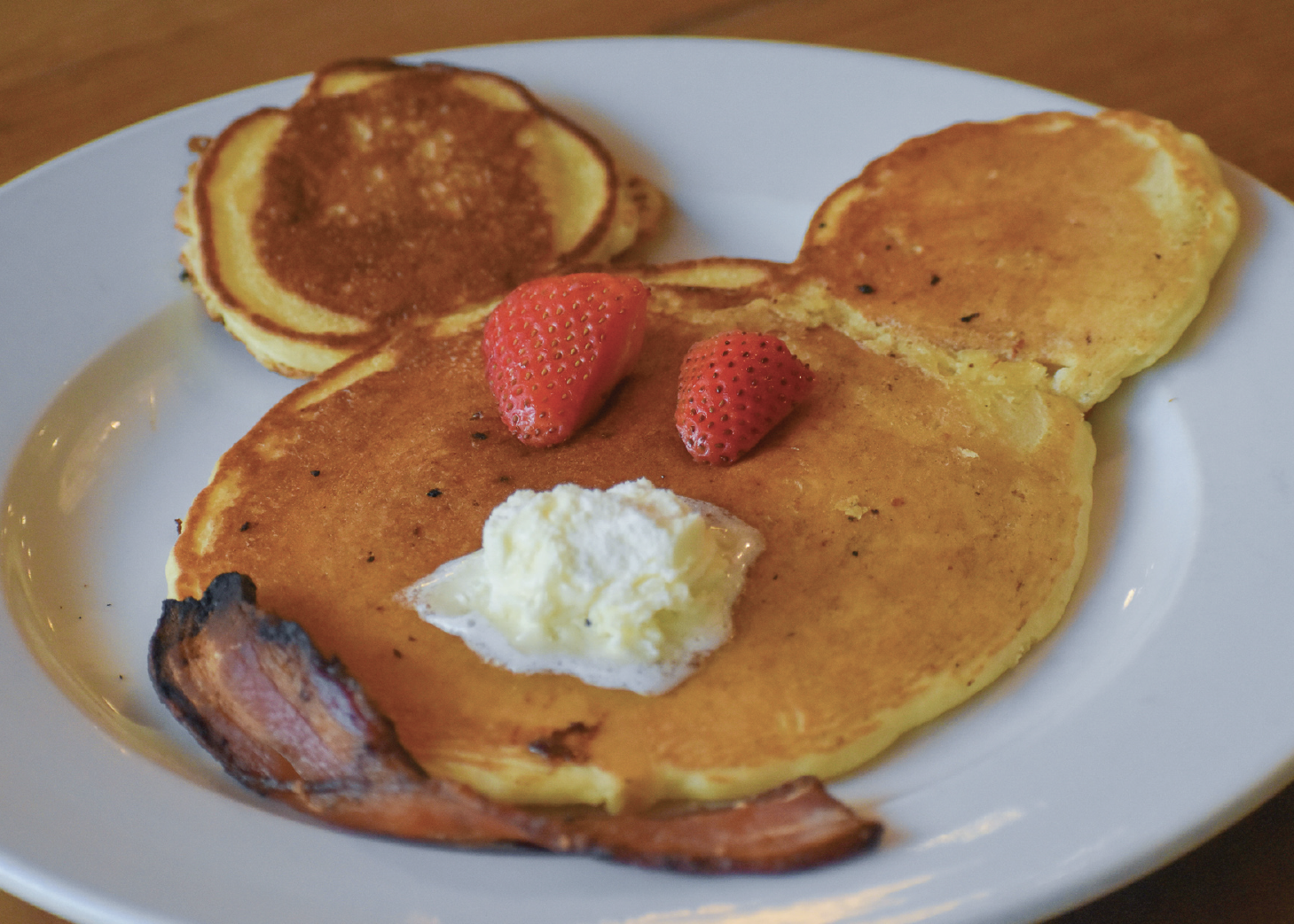Classic pancakes served with bacon or sausage.