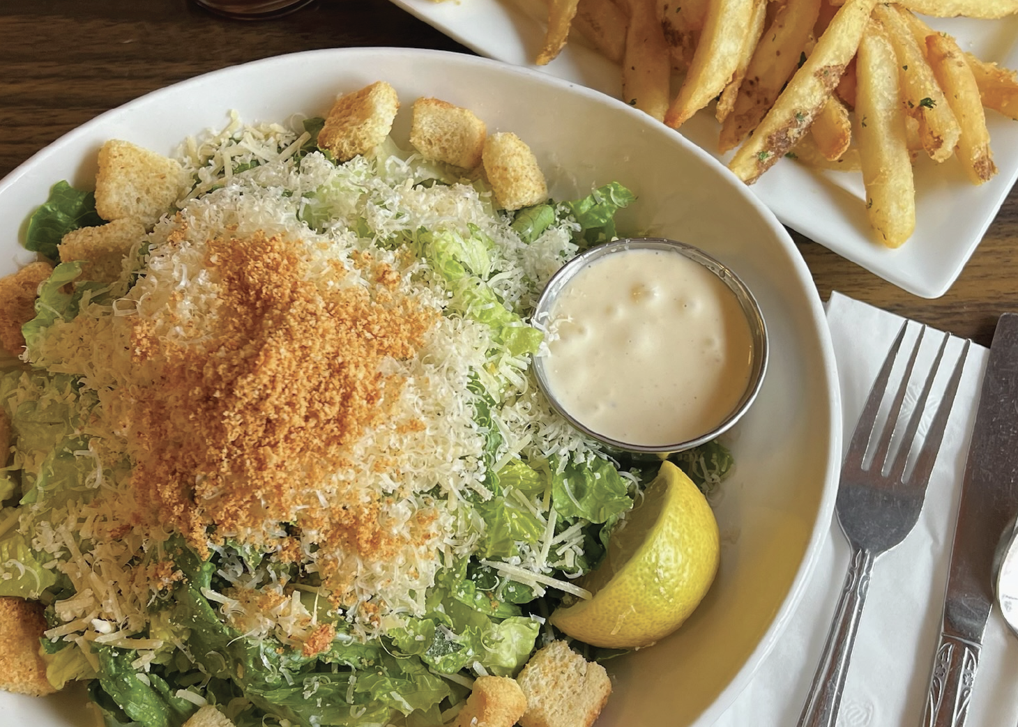Romaine with croutons, garlic, and parmesan. Add chicken $6.00 Add salmon $9.00.