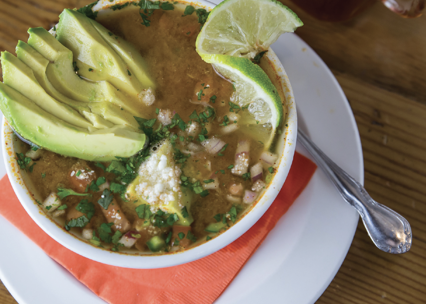 Soup options: Cream of Chicken Wild Rice, Chicken Pozole, Tomato Basil and soup of the day.